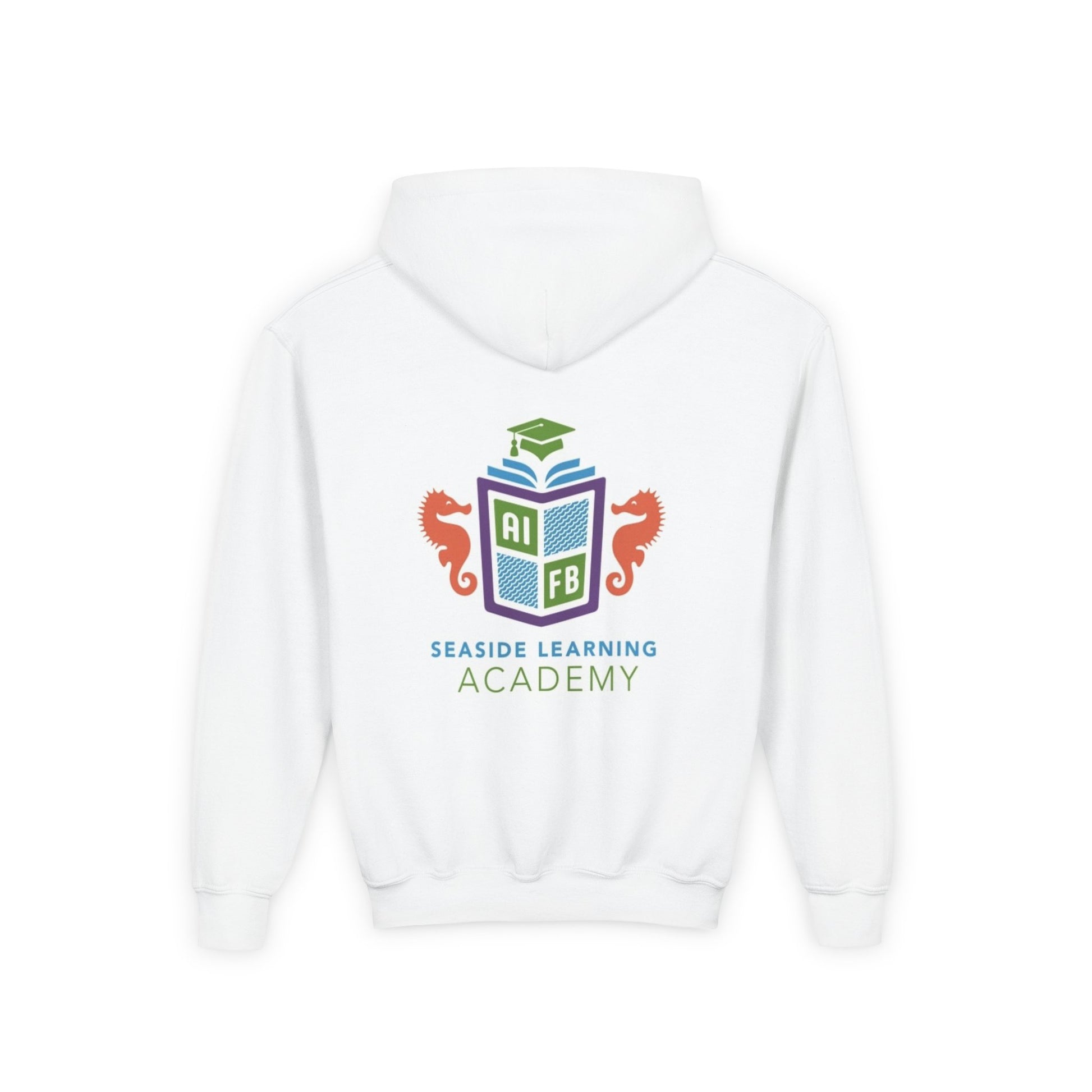 The youth blend hooded sweatshirt is made of ultra-soft, preshrunk fleece that feels wonderful against the skin. The garment is 50% cotton 50% polyester with reduced lint buildup. This makes an excellent combination for printing. The front has a kangaroo pocket big enough for both hands. The neck is reinforced with twill taping.